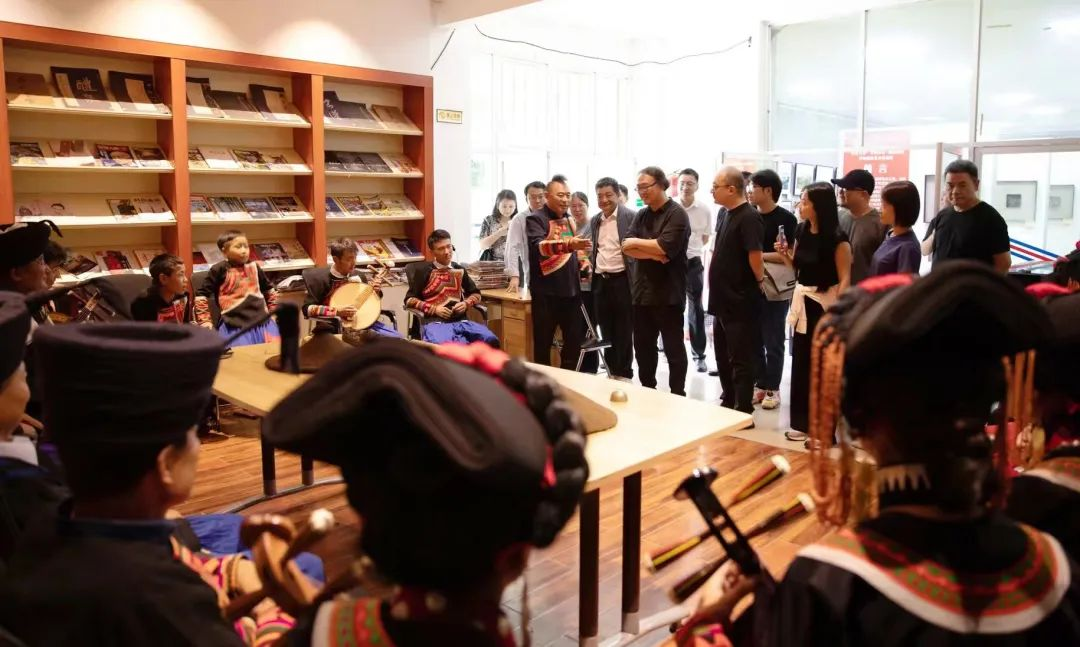 考察中,考察组参观了由马旭东、高文负责设计打造的校内具有代表性的景点,包括精心打造的三大公共艺术作品——月亮之门、天地雄鹰、彝海结盟墙绘。在西幼美术馆,他们还与国美对口支援师生以及国美绘画学院、中国画学院、时尚设计学院的“凉山文化研创”研究生团队的指导老师进行了座谈,共同探讨如何将凉山文化推向更高的艺术创造领域。
