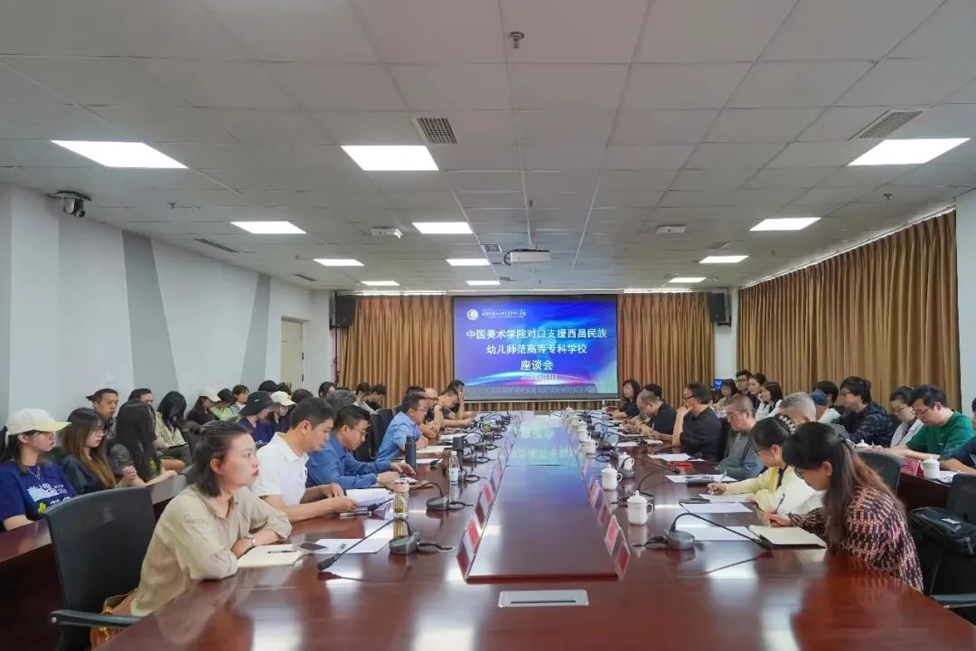 外出调研结束后,中国美术学院对口支援西昌民族幼儿师范高等专科学校座谈会在我校召开,两校教师积极交流发言,在对口支援帮扶、挖掘中华优秀传统文化方面建言献策。