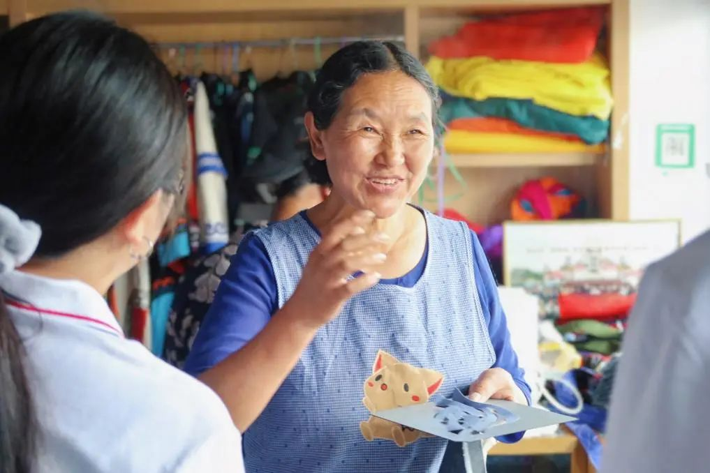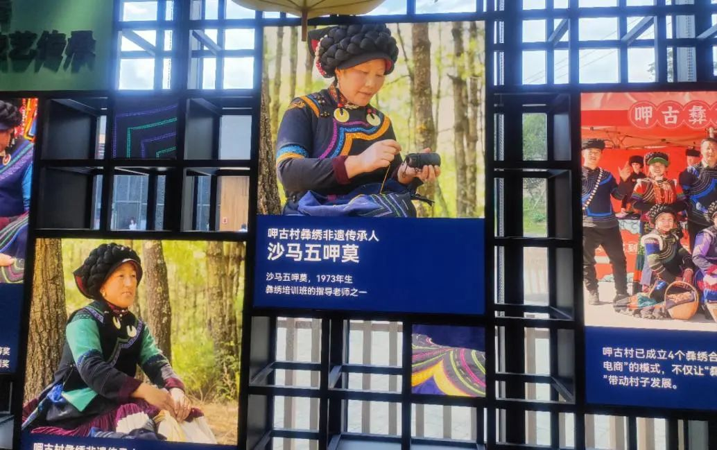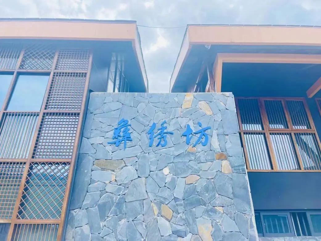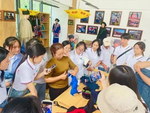 活动现场,呷古村负责人带领师生参观了刺绣工坊,了解彝绣的传统工艺,观赏精美的彝绣作品。呷古村彝绣非遗传承人--沙马五呷莫熟练地介绍着各种针法,一针一线的指导师生们学彝绣。