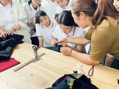 从参观学习到绘制稿图、裁布、刺绣,都由师生们共同完成。短短几天下来,每个人的刺绣水平都有了进一步的提升,大家看着手上精美的“彝绣”作品,脸上露出了开心的笑容。
