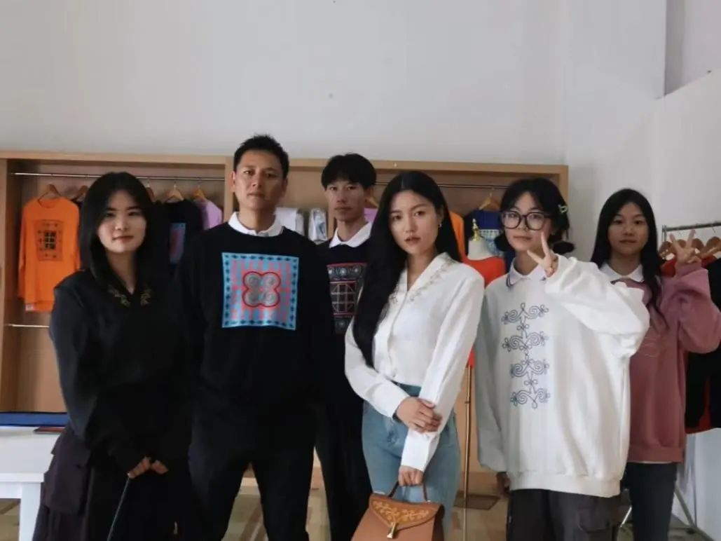 部分师生们穿上了绣娘们的手工作品,现场编排了一个小型的“彝绣服装走秀”。向大家展示了彝族传统服饰与现代服饰的碰撞,以娱乐的形式感受到非遗文化带给我们的震撼,近距离体验了彝绣工艺的精湛。