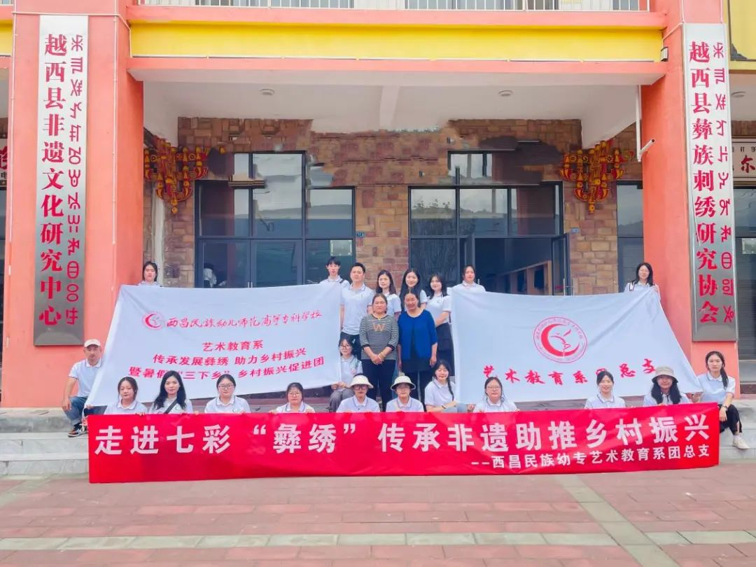 为了全面贯彻落实党的二十大精神关于非遗保护工作的重要指示精神,树立保护与传承彝族文化的思想观念,巩固脱贫攻坚成果。共青团西昌民族幼儿师范高等专科学校委员会艺术教育系团总支22名师生赴越西县普雄镇非遗刺绣工坊开展为期三天的“三下乡”实践活动。