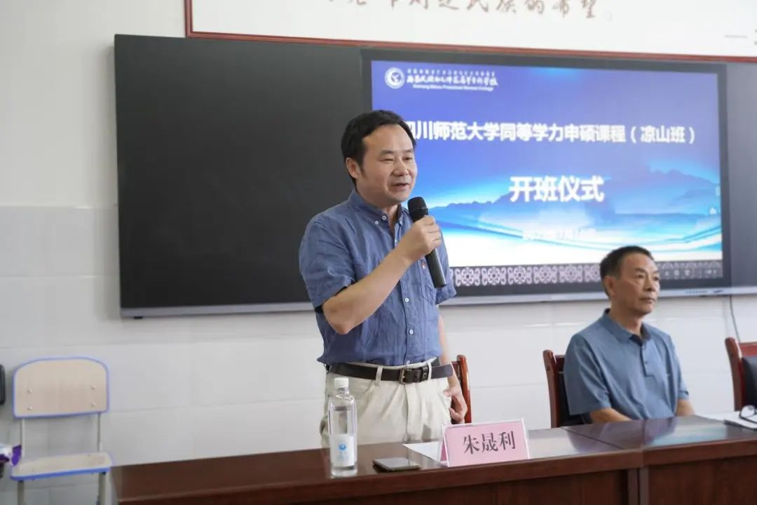 朱晟利简要介绍了四川师范大学的办学理念,并解释了同等学力对教师发展的重要意义。他强调,这一课程的开设将为广大教师提供更多发展机会和平台,提升他们的专业水平与竞争力。同时,朱晟利还提出了对学员们的学习要求,鼓励他们勤奋钻研、勇于创新,在学习过程中克服困难,以更高标准塑造自己。
