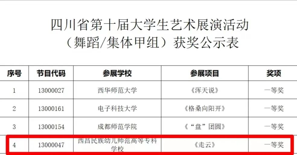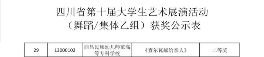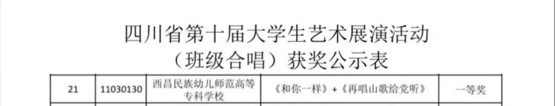 一分耕耘一分收获,西昌民族幼专在四川省第十届大学生艺术展演中成绩突出,大放异彩,展现了学校办学特色和形象。选送四个节目作品评审和现场展演结果公示: