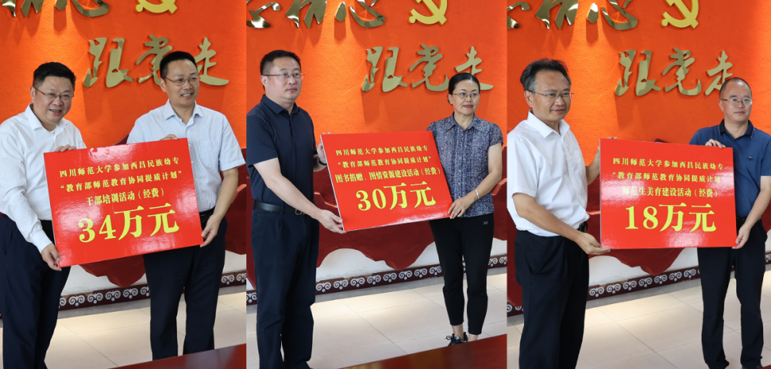 会上,进行了协同提质计划工作项目启动仪式,宣布了具体项目,包括“教育部师范教育协同提质计划”干部培训项目,“教育部师范教育协同提质计划”图书捐赠、图情资源建设项目,“教育部师范教育协同提质计划”师范生美育建设项目。这些项目将为协同提质计划工作推进提供经费支持,助力西昌民族幼专教育教学水平的进一步提高。我校相关部门负责人与四川师范大学的相关部门负责人展开了交流,并讨论了接下来的具体帮扶事宜。