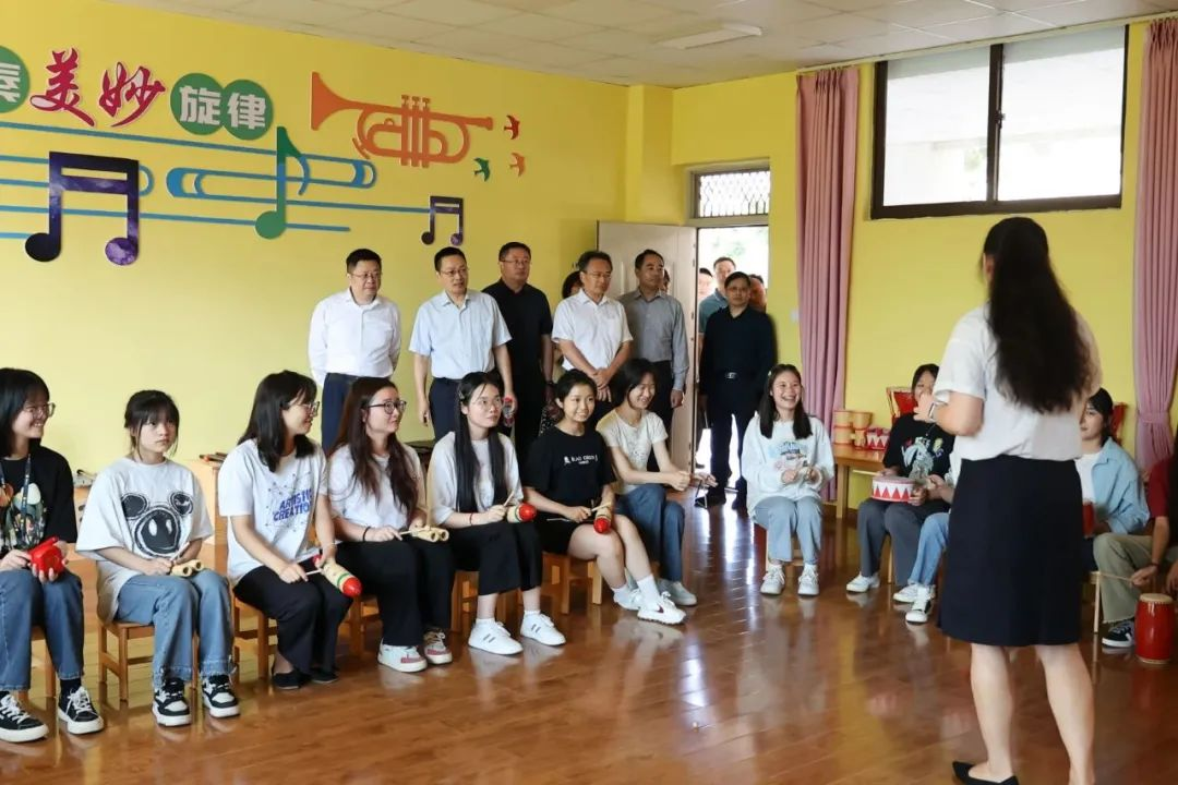 郭勇一行参观了学校虚拟仿真实训室和学前教育专业实训室;在彝海结盟艺术墙绘,对师生在艺术创作与文化传承方面做出的努力大加赞赏;在艺术楼音乐、舞蹈实训室和美术馆,见证了学生们才艺的展示和培养成果;在附属幼儿园,参观了园区基础设施建设,了解了西幼学生实习实训情况;在操场前,观看了新生军训实况和“天地雄鹰”艺术墙;在雏鹰剧院,郭勇一行还观看了学校宣传片,进一步了解了西昌民族幼专的办学理念和特色项目;在“月亮之门·友谊之桥”主题雕塑和川师援建“彝汉同心”雕塑前分别留影。