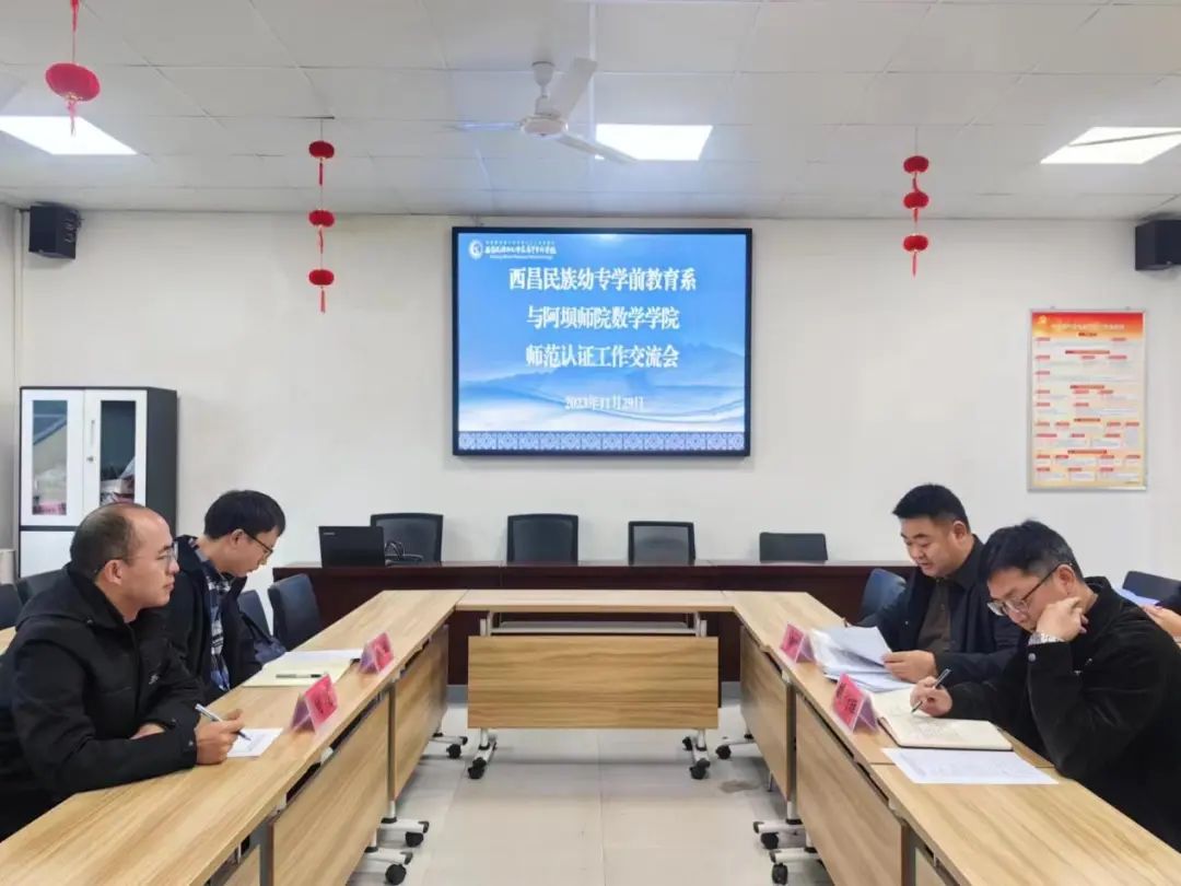 为有效推动师范专业认证工作,促进校际交流协作。近日,我校学前教育系与阿坝师范学院数学学院开展师范专业认证工作交流会。阿坝师院数学学院院长杨仕椿、教师何璞,我校学前教育系主任余成红、副主任魏衍辉及相关工作人员参加会议。