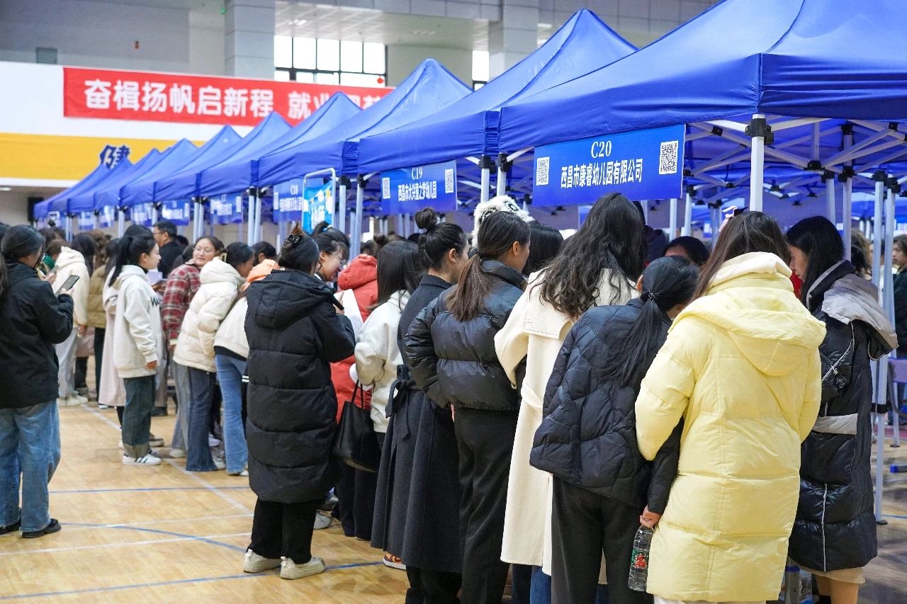 为深入贯彻习近平总书记来川视察重要指示精神,切实贯彻落实教育部和省教育厅2024届普通高校毕业生就业创业工作视频会议精神,落实党中央、国务院和省委、省政府关于稳就业决策部署,促进毕业生高质量就业,搭建校企交流平台。12月22日,我校在体育馆举办了“学前启航·你我同行”为主题的2024届学前教育类专业毕业生专场招聘会。
