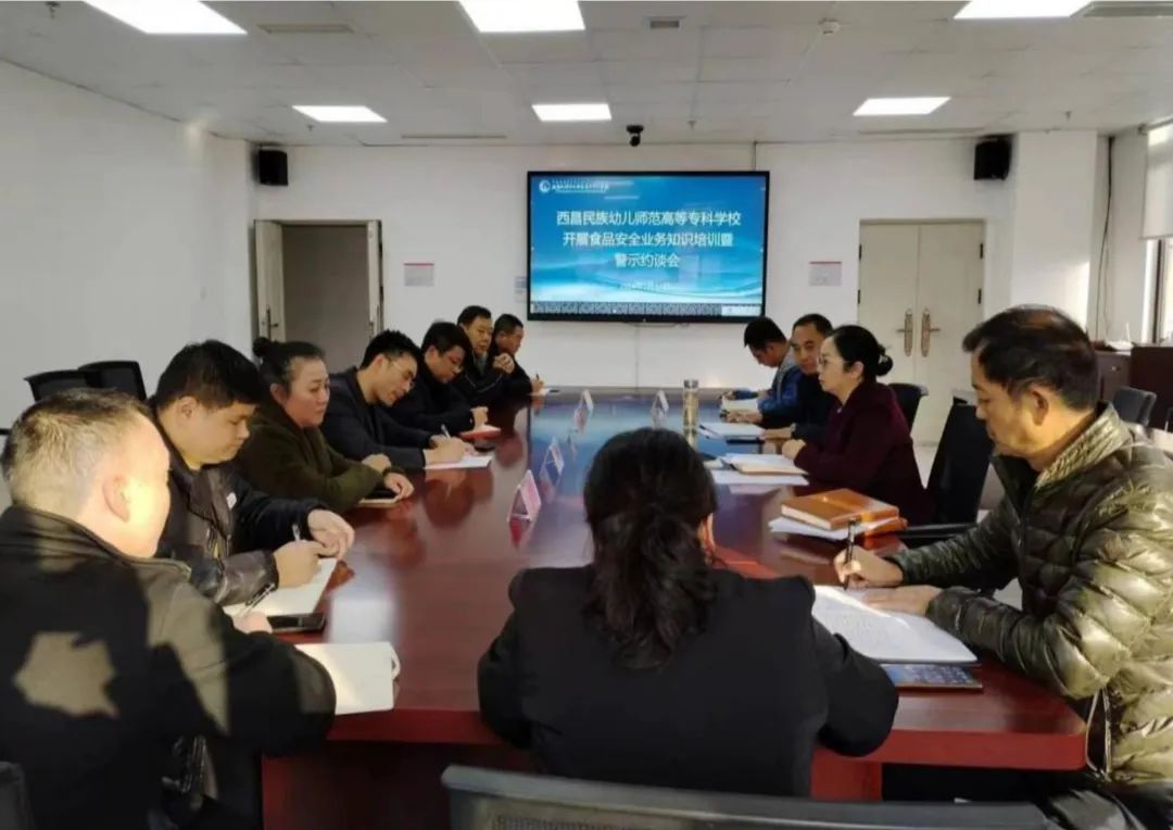 近日,西昌民族幼专后勤管理处组织开展食品安全业务知识培训暨警示约谈会。会议由后勤管理处处长吴凤贤主持,后勤处监管老师、各餐饮公司法人、项目经理、食品安全员参加会议,学校党委委员、副校长马辉出席会议。