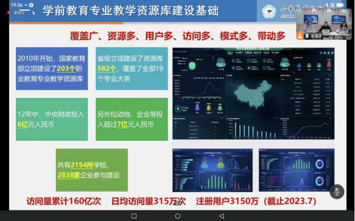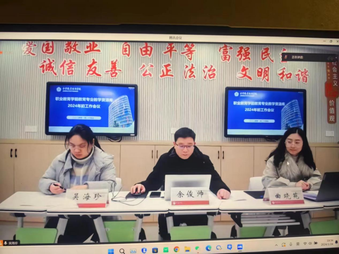 为进一步推进专业建设进程,提升教育教学质量,根据当前教育教学改革和教育信息化发展的新形势、新任务和新要求。近日,我校学前教育系在金华职业技术学院师范学院的邀请下,作为成员单位参与学前教育专业教学资源库建设工作,学前教育系主任余成红、副主任胡红及相关课程建设负责人通过腾讯会议参加职业教育学前教育专业教学资源库建设工作会议。