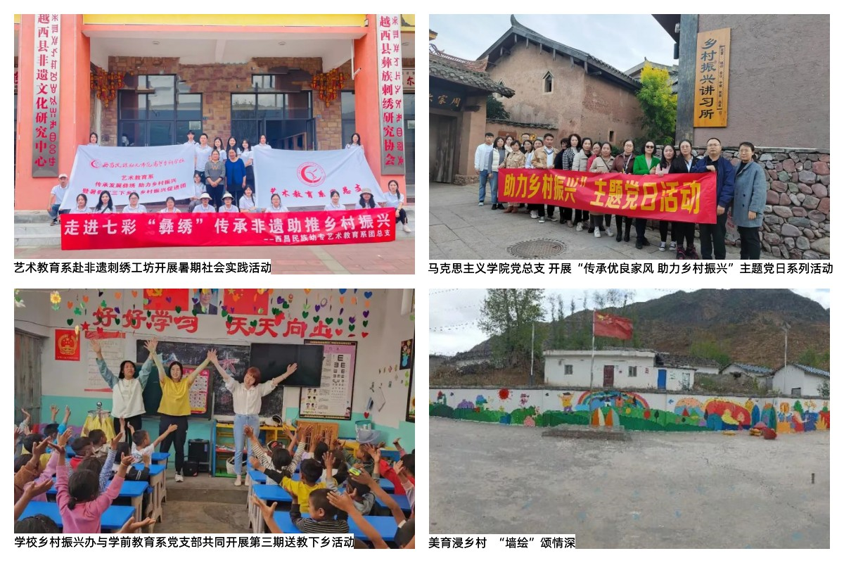 学校积极践行责任,做实教育扶贫、乡村振兴,先后选派25名同志担任第一书记、驻村工作队员,对口帮扶美姑县采乃坚村、普格县团结村、西洛镇博基村、洛莫村工作,获得帮扶先进单位称号。如,师生组成“送美下乡”队伍,开展了“送美下乡,以美化育”主题墙绘志愿服务活动,为洛莫村开展环境亮化工程;选派优秀学子深入洛莫村开展支教活动;对口帮扶西洛镇“一村一幼”辅导员培训,为普格县教育振兴助力护航。