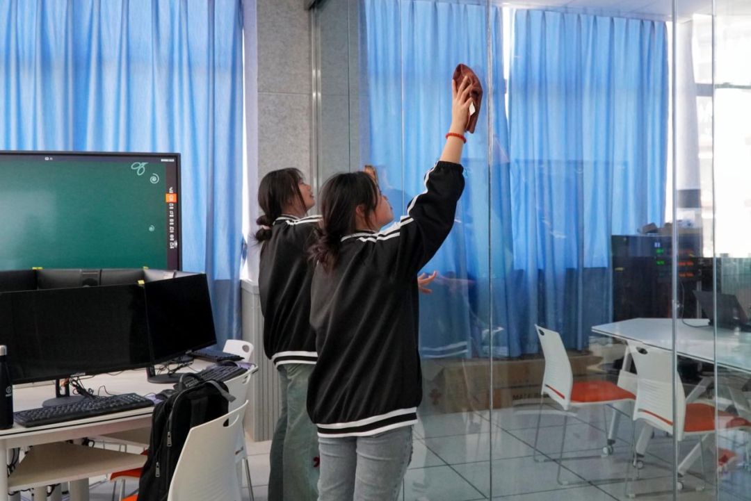 同学们相互合作,积极投入到清扫工作中。有的捡走草坪上的纸屑等杂物,有的用清扫工具清除走廊、跑道上的塑料袋、矿泉水瓶等垃圾,有的擦去桌子、玻璃上的灰尘,绝不放过任何一个卫生死角。他们不怕苦、不怕热、不怕脏,忙碌的身影已然成为西幼校园里最靓丽的风景线!经过大家几个小时的努力,校园焕然一新。