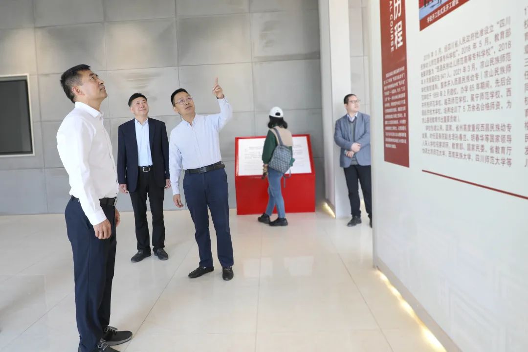 调研组一行先后走访调研了校情展示馆、美术馆、月亮之门主题雕塑,真切感受学校在校园文化建设和非遗传承创新方面取得的显著成效,对学校事业发展取得的成绩给予充分肯定,认为学校办学定位准确、思路清晰、民族特色鲜明,在人才培养、招生就业、服务地方经济和非遗传承创新等方面都取得了好成绩。