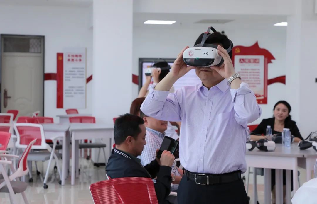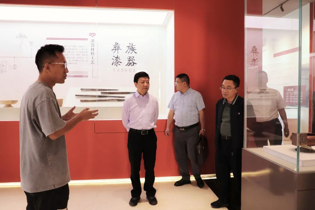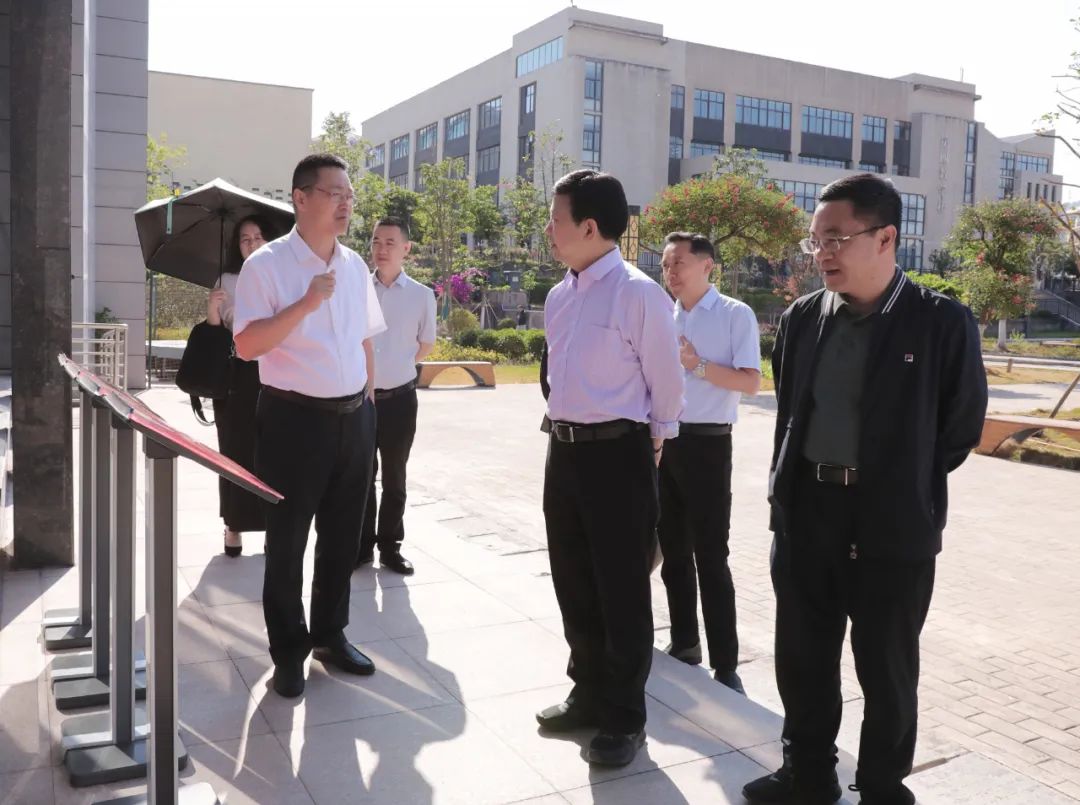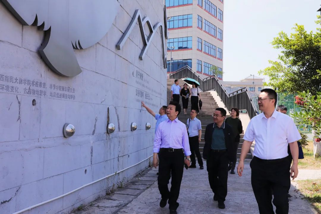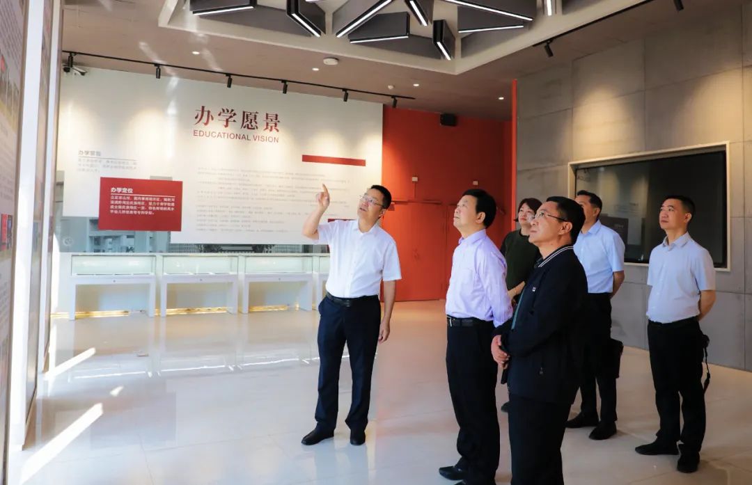 张斌一行先后走访调研了校情展示馆、非遗博物馆、美术馆、伟大建党精神和思政教育虚拟仿真实训室、月亮之门 · 友谊之桥主题雕塑、雏鹰剧院、天地雄鹰文化墙,全方位了解学校在党建、校园文化建设和非遗传承创新等方面的基本情况。