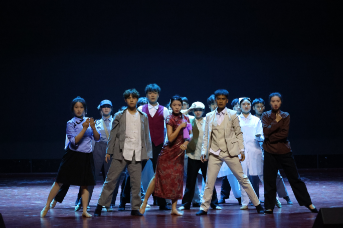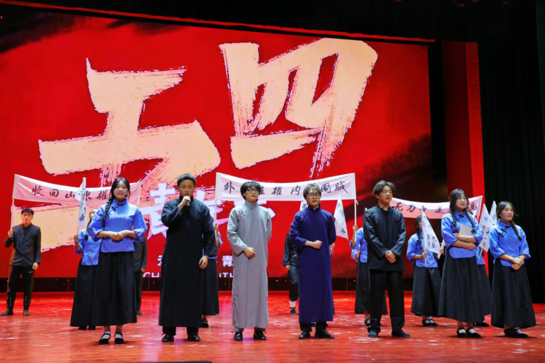 在第一篇章中,节目《造浪》《庄严的宣誓》《五四风云》舞台上,幕起幕落间,场景转换,演员们每一个动作,每一句台词都凝聚着历史的厚重和青春的热情,与我们一起穿越时空,共忆那段热血沸腾的五四运动。