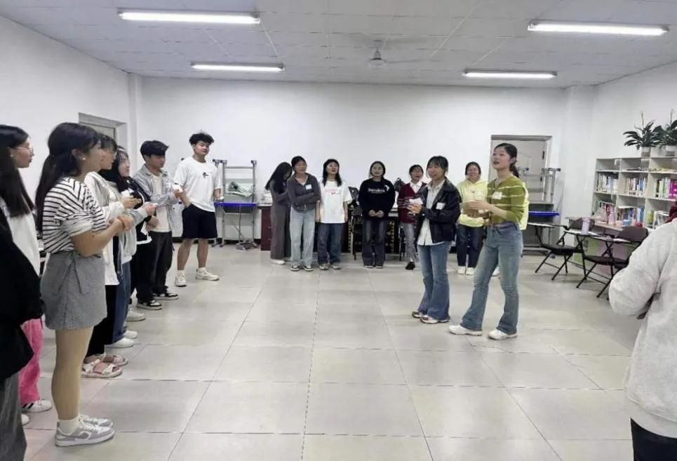 随着音乐的响起,同学们纷纷起身,进行自我介绍,通过这一环节,大家不仅相互认识,还初步感受到了团队的温暖与融洽。紧接着的“身体暖身活动”更是将现场气氛推向高潮,同学们在轻松愉快的氛围中逐渐拉近了彼此的距离。