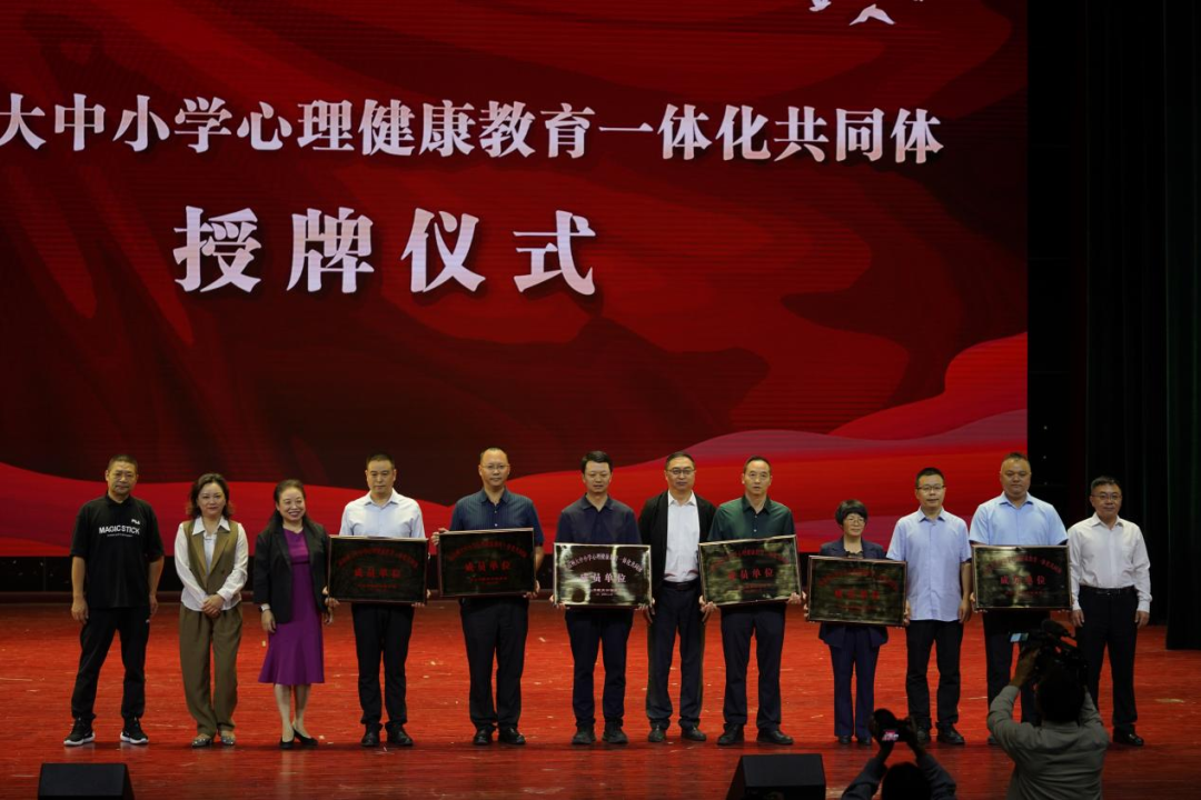 袁智在发言中强调了心理健康教育的重要性,并对共同体的未来发展寄予了厚望。启动仪式上,李延青、袁智、杨金河、冬蓓、戴艳、卢立武共同上台,点亮了象征共同体启动的“心灯”,并为共同体成员单位授牌,标志着凉山州大中小学心理健康教育一体化共同体正式成立。