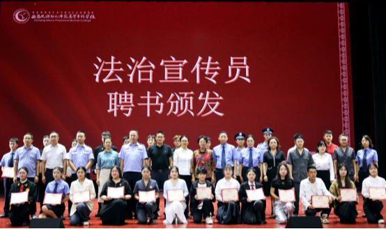 活动中,出席嘉宾为参加本次活动的同学们颁发法治宣传员聘书。