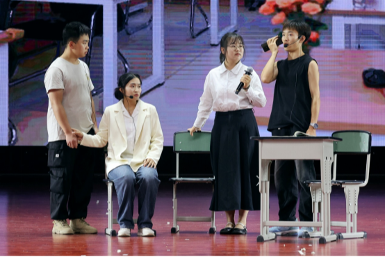 同学们将学校里常见的欺凌方式用情景剧展现在观众面前,并且以最流行的平行时空穿越者的视角,用七个剧幕讲述了发生在学校、家庭、社会中的欺凌者、被欺凌者、沉默者之间的故事,将不良个人情绪、家庭教育方式与朋辈关系作为影响不良行为向犯罪行为转化的催化剂,让观众在看剧的同时也引发深思——怎么样控制及抒发不良情绪?怎么样对孩子进行好的家庭教育?什么是好朋友?该情景剧精彩的表演受到现场观众的好评,现场掌声不断。