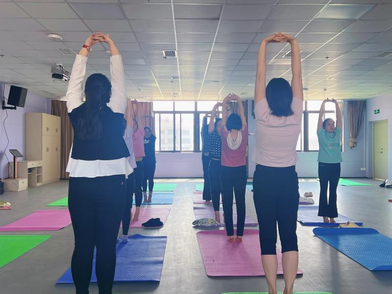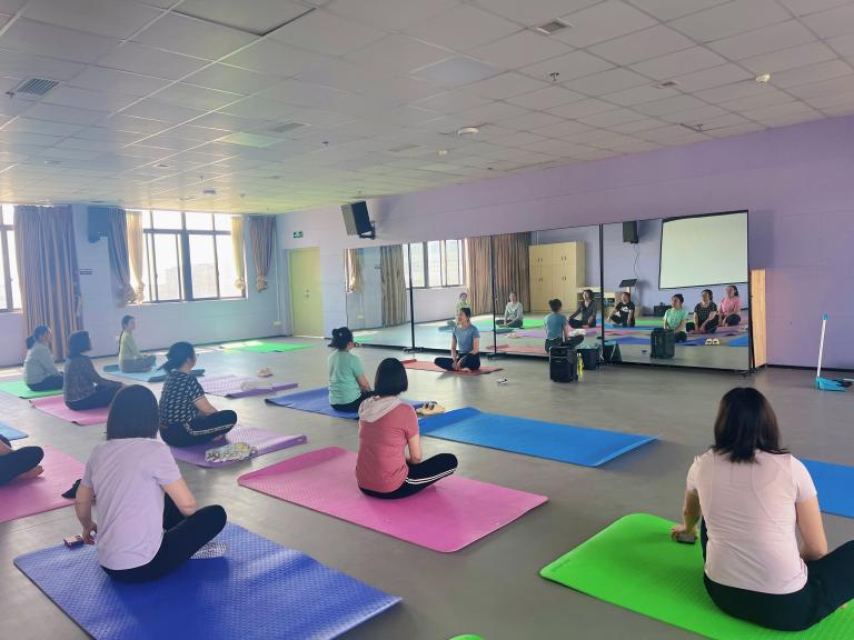 而瑜伽课则为忙碌的校园生活带来了一缕宁静,帮助教职工在紧张的工作与生活中释放压力、舒缓身心的有效途径。