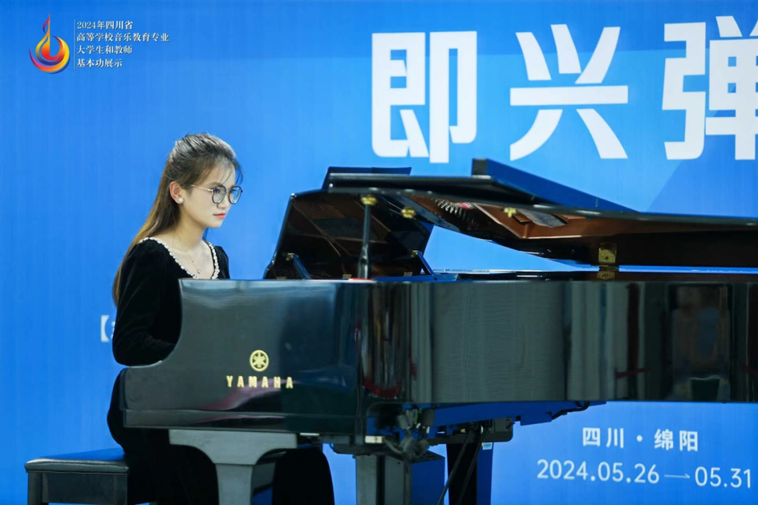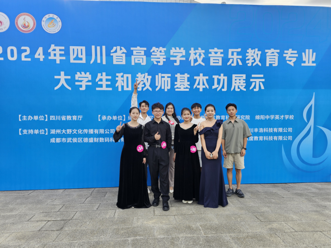 在刚刚落幕的2024年四川省高等学校音乐教育专业大学生和教师基本功展示大赛中,艺术教育系经过选拔共派出三位老师和四位同学参赛。本次比赛内容涵盖了声乐、器乐、钢琴、指挥等多个方面,全面考察参赛者的音乐理论知识、实践技能和创新能力。