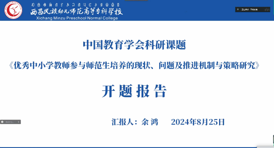 专家评审环节,凉山州教科所何良仆、西昌学院姜廷志、四川师范大学罗银科和朱晟利、北京师范大学檀慧玲五位专家教授分别对该开题报告作评议和指导。