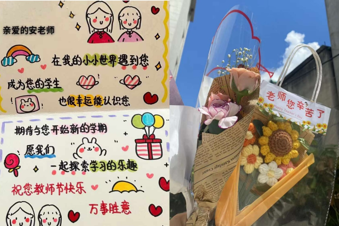 与此同时,许多班级的学生们也用自己独特的方式为老师们送上了节日的祝福。有的班级精心制作了手工贺卡,每一张贺卡都凝聚着学生们的心血和创意。五彩斑斓的画笔写下对老师的感恩之情,有的画着老师上课的情景,有的画着老师与学生们一起玩耍的画面,每一幅画都充满了温馨和感动。有的班级组织了一场别开生面的诗歌朗诵会,学生们用深情的诗句表达对老师的敬爱。“老师,您是灯塔,照亮我们前行的路;老师,您是园丁,培育我们茁壮成长……”那一声声真挚的朗诵,仿佛在诉说着学生们对老师的无尽感激。还有的班级为老师准备了一束束鲜花,那鲜艳的花朵如同学生们灿烂的笑容,让老师们在芬芳中感受到学生们的浓浓爱意。