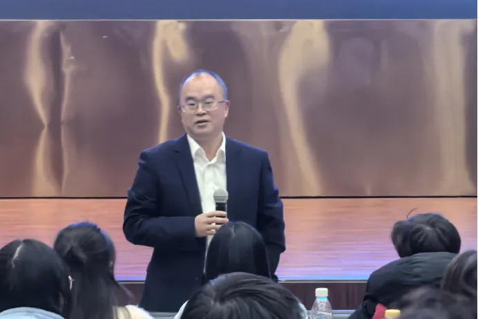 莫尚斌老师为大家带来了AI文学方面的精彩分享。他详细介绍了通义千问、通义听悟、通义灵码、通义万相等一系列AI应用的功能及使用方法,生动展示了AI在现实生活和学习中的广泛应用,为同学们拓宽了视野,提供了更多元的思考角度。