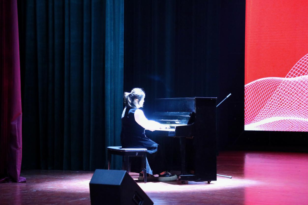 教师代表张天一表演钢琴独奏《平湖秋月》