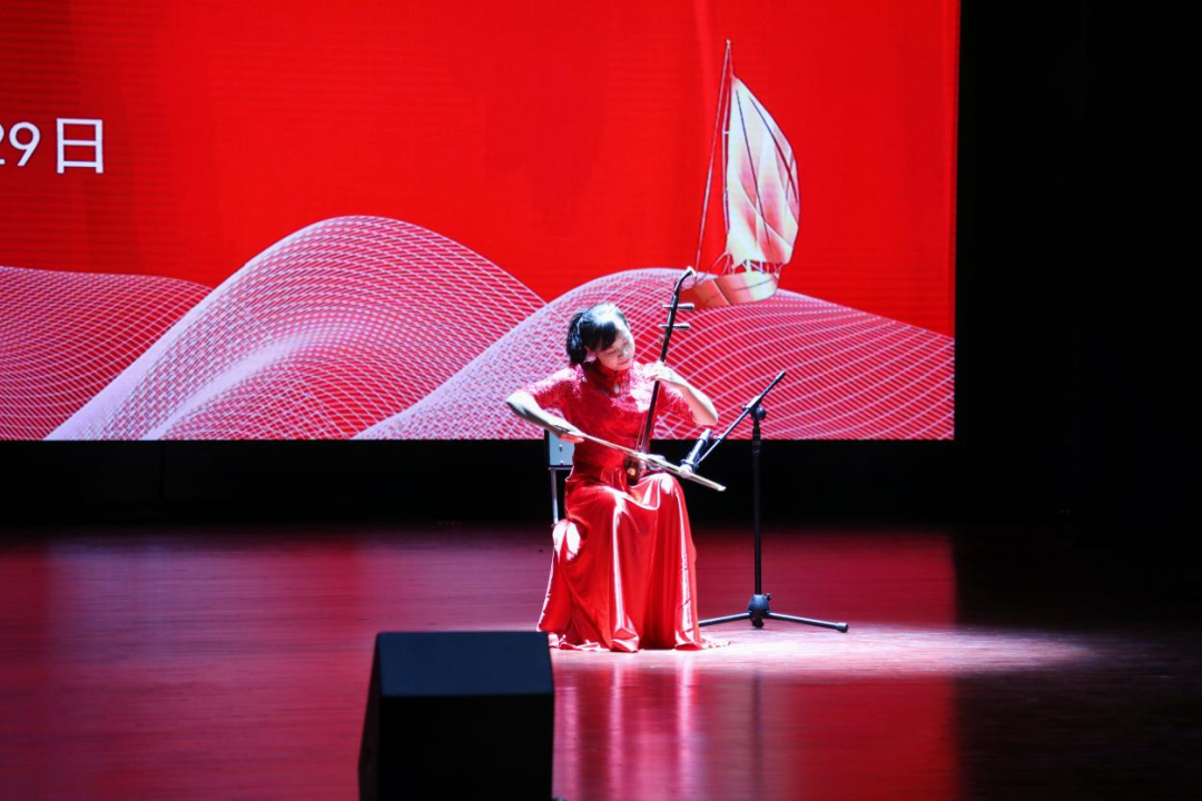 教师代表余雁君表演二胡独奏《骏马奔驰保边疆》