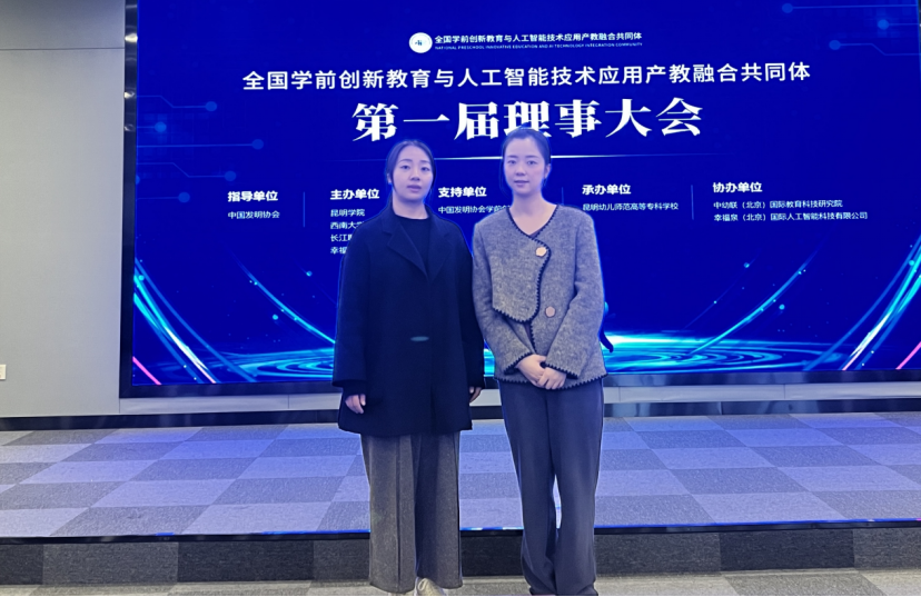 为贯彻落实《关于深化现代职业教育体系建设改革的意见》《国家职业教育改革实施方案》《职业教育产教融合赋能提升行动实施方案(2023—2025年)》等文件精神,培养既掌握创新人才教育技能、又掌握人工智能应用技能的“双技能”复合型幼教人才。近日,全国学前创新教育与人工智能技术应用产教融合共同体第一届理事大会在昆明幼儿师范高等专科学校举行。我校学前教育系早期教研室负责人赵婷、专任教师丁雪芮参会。