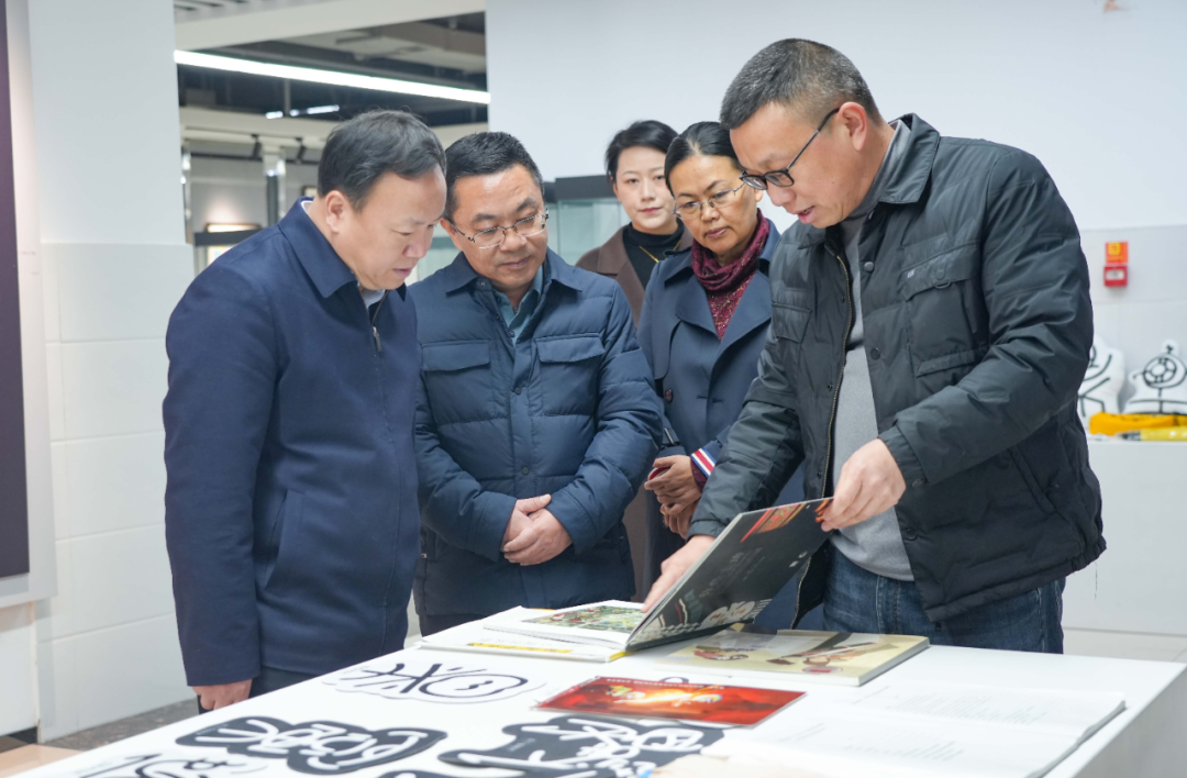 成建华一行先后参观了学校校情展示馆、非遗博物馆、美术馆,了解我校的办学特色,以及非遗传承及民族特色、艺术创作及校园文化建设等方面的情况。