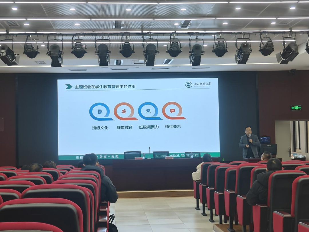 12月17日,我校“西幼·论道”第三期辅导员业务能力培训在图书馆报告厅举行。四川师范大学卓飞、陈露红老师为我校全体专兼职辅导员开展了《如何开展好主题班会》《谈心谈话技巧》主题讲座。