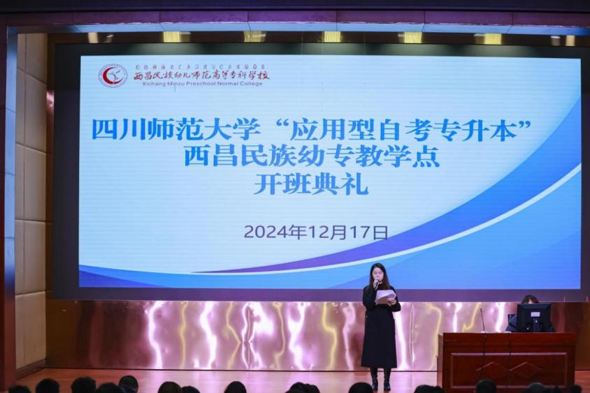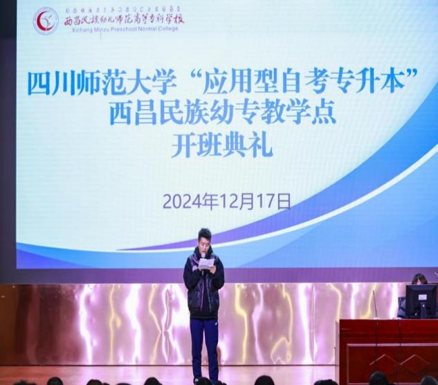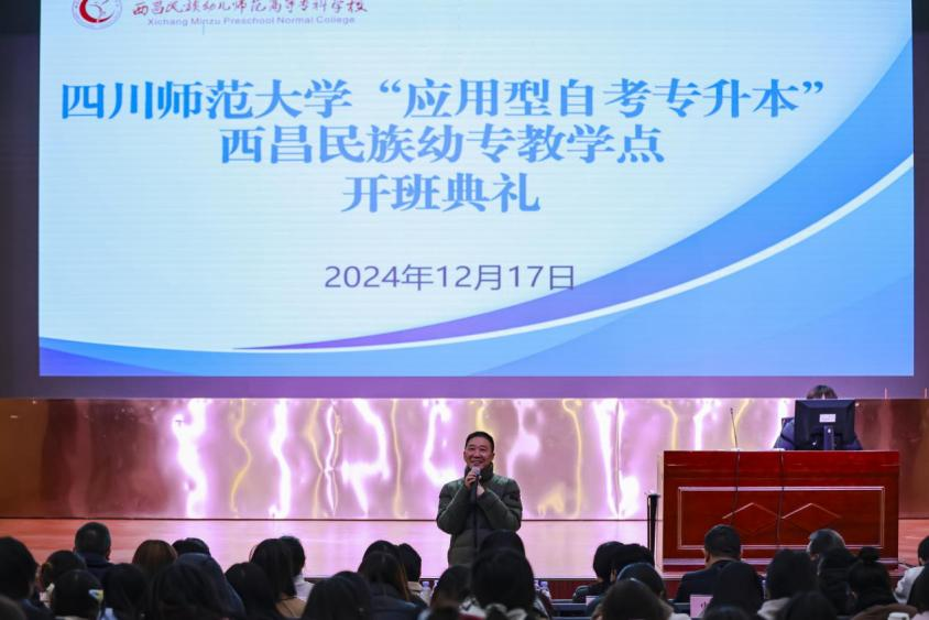 12月17日,四川师范大学“应用型自考专升本”西昌民族幼专教学点举行了第253次自学考试专升本新生开班典礼。副校长袁顶国、教师发展处副处长范星梅、各系部分管教学副主任、各系部学工干事、150余名新生和教学点相关人员参加了此次开班典礼。