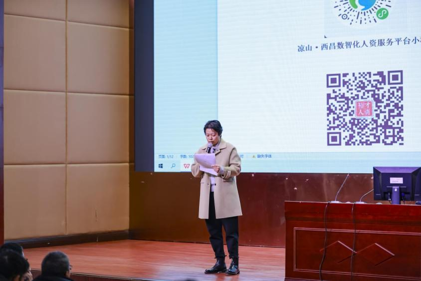 西昌市裕才人力资源服务有限公司总经理韦柯向同学们介绍了西昌市人力资源服务产业园线上平台,展示了未来丰富、多元的就业动态,激励同学们根据市场需求,提前为就业做准备,未来还可以通过西昌市人力资源服务产业园平台开展一对一就业指导服务。