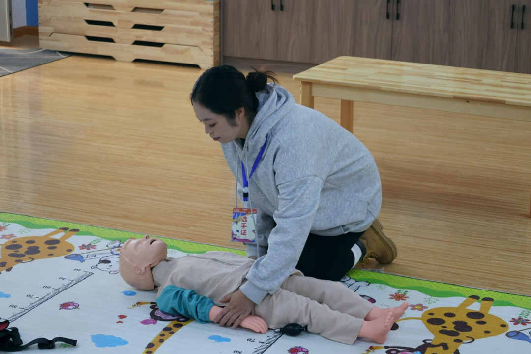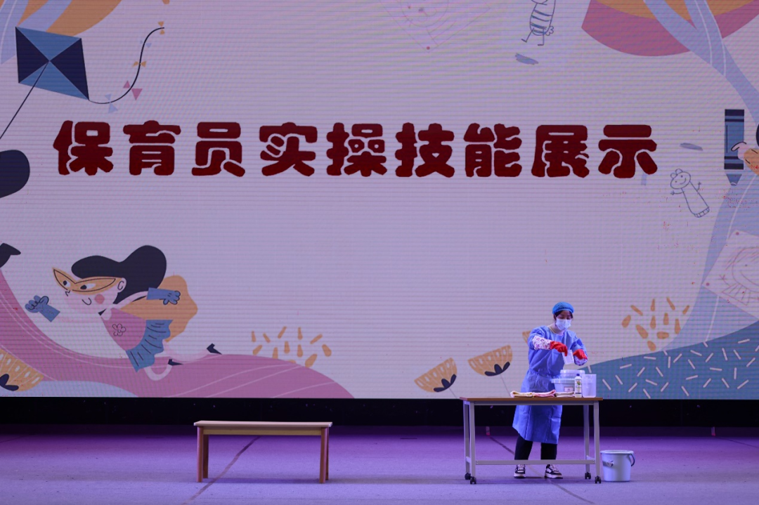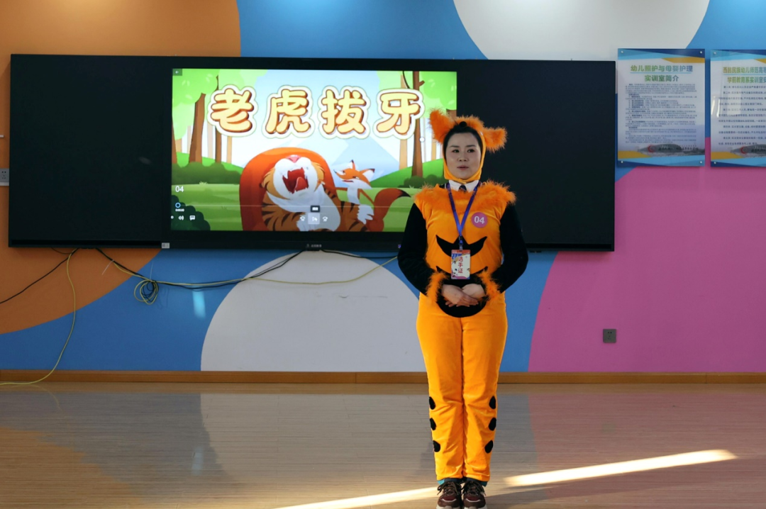 在接下来的比赛中,幼儿教师组、辅导员组与保育组三组选手纷纷亮出绝活,展开了一场场精彩绝伦的技能比拼。幼儿教师组选手们围绕课件制作、儿歌弹唱、现场教学与说课等项目,展现出了扎实的专业技能与出色的教学风采;辅导员组则在儿歌弹唱、幼儿舞蹈、讲故事、主题网络图设计等方面大放异彩,彰显了她们的专业素养与创新能力;保育组选手们则通过现场安全救护、卫生消毒技能演示、幼儿故事讲述等环节的比拼,展现出了她们在幼儿保育工作中的严谨与细致。