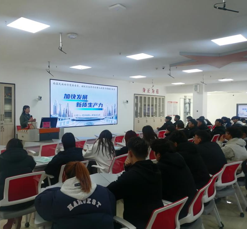 2024年12月26日,党委委员、副校长伍琴(挂职)以《加快发展新质生产力》为题在伟大建党精神思政教育虚拟仿真实训室为基础教学部24级休闲体育专业学生作形势与政策专题辅导报告,她深入阐释了什么是新质生产力、为什么要发展新质生产力、怎样发展新质生产力的重大理论和实践问题。她强调,同学们要认识到发展新质生产力是推动高质量发展的内在要求和重要着力点,是时代所需、发展所急、大势所趋。并要求同学们要密切关注新质生产力的发展趋势,主动融入这一发展浪潮,不断提升专业知识和技能,为实现经济社会高质量发展作出贡献。