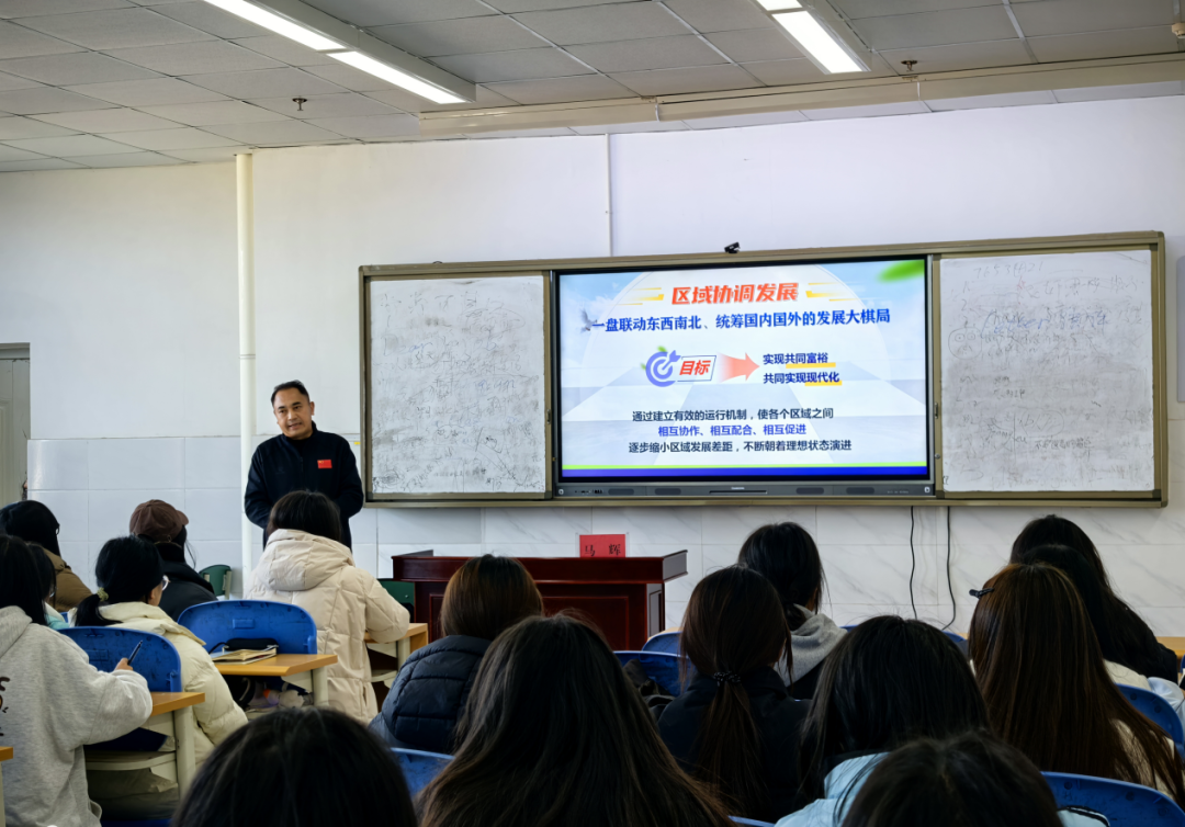 2024年12月10日,党委委员、副校长马辉以《下好区域协调发展这盘棋》为题在第一教学楼1514教室为艺术教育系23级美术教育专业学生作形势与政策专题辅导报告,他深入分析了区域协调发展战略的内涵要义和鲜明特点、我国区域协调发展成就与挑战并存、区域协调发展向更高水平迈进遵循的发展理念。他强调,同学们要认识到区域协调发展与中国式现代化在高质量发展、以人民为中心、共同富裕、空间治理及生态保护等视角上,具有相同的内涵要义;认识到我国各地区基础条件差别之大世界少有,统筹区域协调发展任务艰巨,必须顺应区域发展在时序上有先有后、程度上有高有低、速度上有快有慢的规律,实现区域发展的“相对平衡”;认识到以更高站位、更大力度、更强担当、更实举措,构建优势互补、高质量发展的区域经济布局,就能为推进中国式现代化提供重要支撑、构建良好局面。