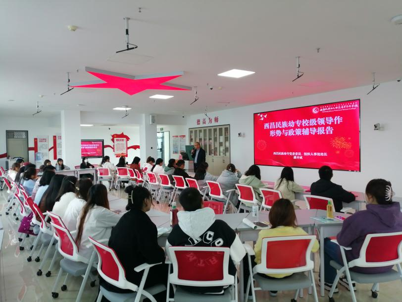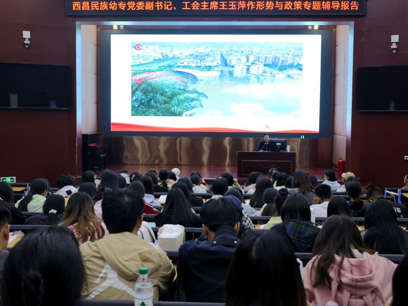 2024年11月1日,党委副书记、工会主席王玉萍以《七十五载迎盛世 砥砺前行续华章》为题,在学术报告A厅为学前教育系23级学前教育专业学生作形势与政策专题辅导报告。王玉萍从核心价值观固本培元、文化繁荣滋润人心、文脉传承历久弥新、中华文化影响力持续扩大等方面结合学校校园文化建设历程进行了深入阐释。王玉萍指出,文化关乎国本、国运,文化兴则国运兴,文化强则民族强。新中国成立75周年来,党领导人民坚持走中国特色社会主义文化发展道路,增强文化自觉,坚定文化自信,建设社会主义文化强国,铸就了巍峨耸立的中华民族精神大厦。中国人民的精神生活更加丰富,精神面貌深刻改变,精神力量显著增强。希望西幼学子秉承“明道、立德、育爱、奉献”的校训,不断创造属于自己的人生新辉煌。