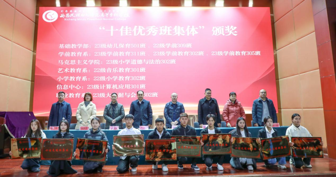 典礼上,校领导为“十佳优秀辅导员”“十佳优秀班集体”颁发了证书及奖牌。