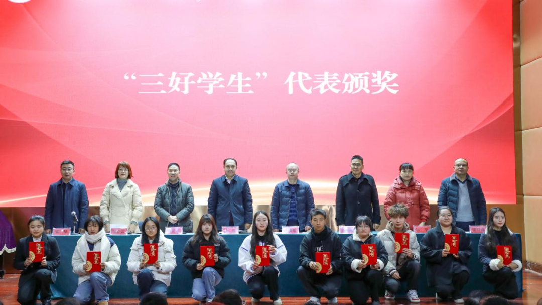 会上,邹华宣读《关于表彰学生先进集体和优秀个人的决定》,校领导为获奖代表颁奖。