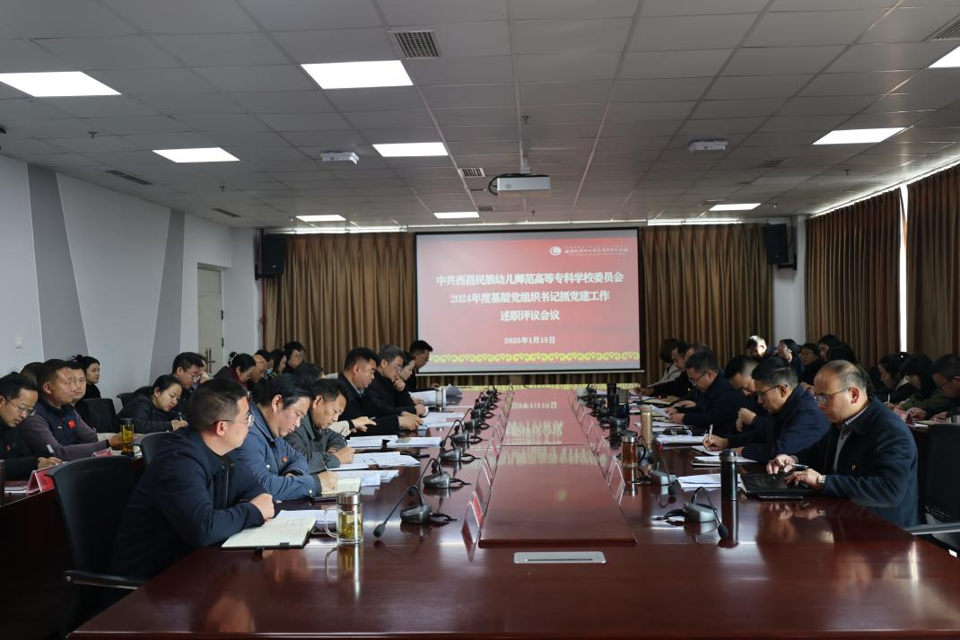 根据省州相关工作安排,1月15日,西昌民族幼专党委召开2024年度基层党组织书记抓党建工作述职评议会。党委书记卢立武主持会议并讲话。校党委领导班子成员、各党总支书记、主持党总支工作的副书记、党支部书记、部门负责人及其他相关人员共50余人参会。