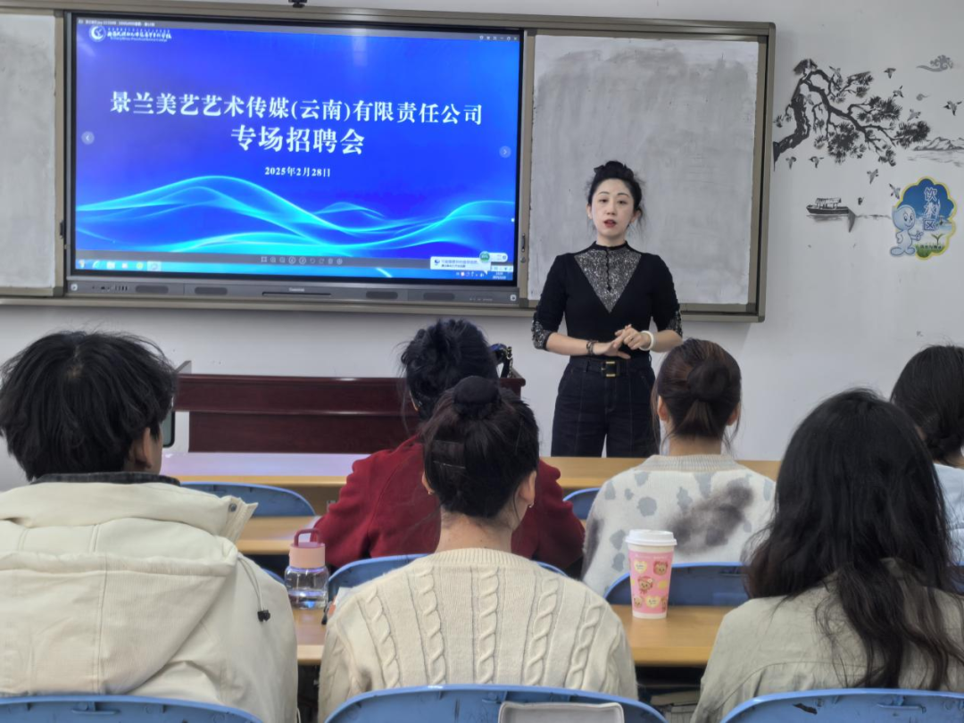 招聘现场,景兰美艺艺术传媒(云南)有限责任公司招聘负责人详细介绍了企业的发展历程、业务范畴、企业文化以及提供的岗位详情。