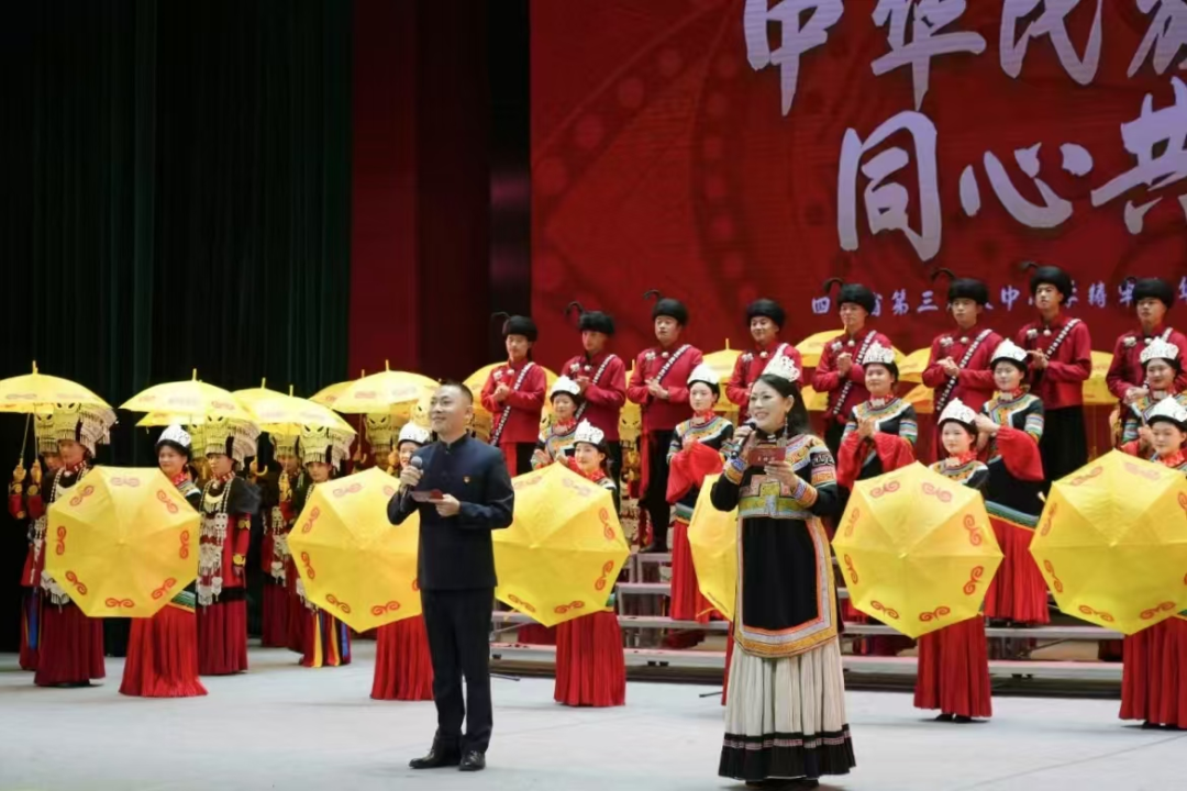 他说,1935年,在彝海之畔,刘伯承元帅与彝族首领小叶丹歃血为盟,这不仅是红军长征胜利的战略支点,更是中华各族儿女血脉相连的生动见证。2018年,在推进脱贫攻坚、大力发展民族教育之时,兄弟院校跨越山海的对口支援,教育资源的云端共享,让凉山学子与知名高校同上一堂课;师资队伍的结对培养,让先进教育理念在彝乡扎根生长;实训基地的共建共享,让技能成才之路铺满团结进步的星光。他希望,四川省第三届大中小学铸牢中华民族共同体意识校园舞台成为照亮心灵的灯塔,让“彝海结盟”的精神火种,点燃更多青年学子维护民族团结的赤诚之心;愿每个年轻的生命都成为传递民族情谊的信使,让中华大地永远绽放“石榴籽紧紧相拥”的绚丽之花。