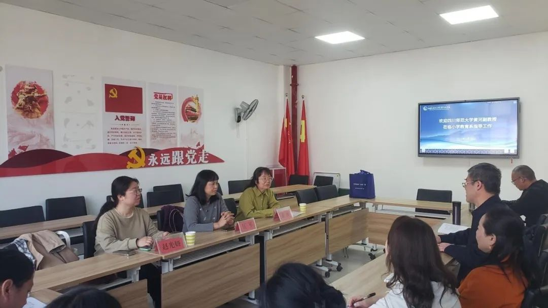 近日,四川师范大学外国语学院大学英语教学部黄河副教授、赵光妍老师应邀到我校小学教育系,为英语教研室全体老师进行教学讲座,此次活动旨在助推我校《大学英语》课程建设,提高教师教学水平与能力。我校党委委员、副校长伍琴(挂职),小学教育系主任安险峰及英语教研室全体教师全程参与。