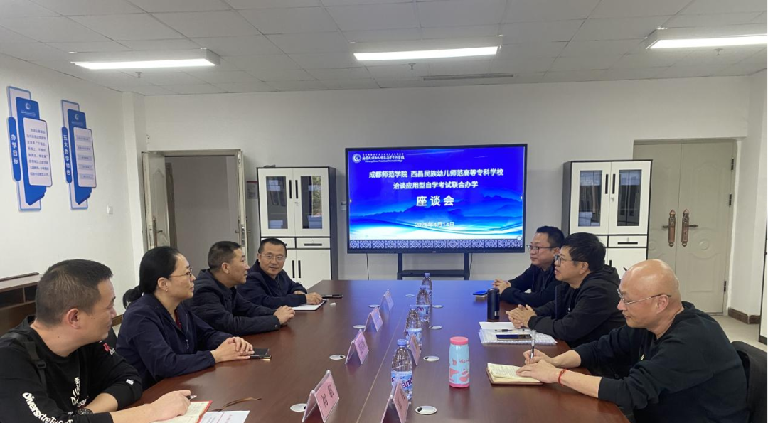 近日,成都师范学院李巍一行赴我校就应用型自学考试联合办学事宜开展深入交流。成都师范学院继续教育学院院长李巍、副处级调研员刘挺、教育科学学院办公室主任王晓波,我校副校长袁顶国、教师发展与质量评估处副处长范星梅、督导办主任訚勇、自考管理员初航参加座谈会。
