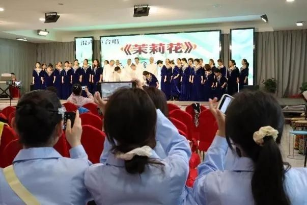 在邛海康旅人家多功能活动厅,师生共同观摩了乐山市爱乐合唱团与西昌市岁月之声合唱团的联合演出。老人们精神矍铄,以《祝福祖国》《爱国之恋》等经典曲目展现积极向上的精神风貌,现场掌声不断。学生们通过观察活动流程设计、参与度调动技巧及互动环节组织方式,直观掌握了老年活动策划的核心要素,为后续《老年活动策划》课程学习打下实践基础。