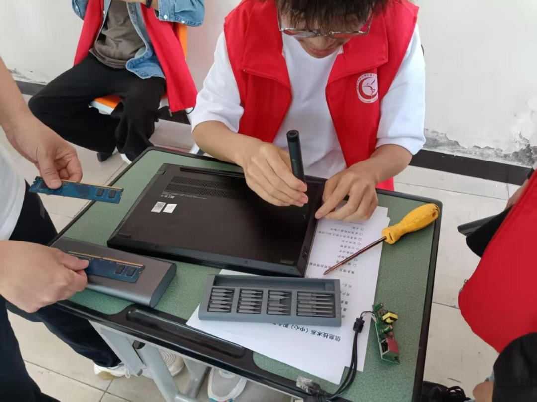 在维修中,面对部分电脑因久未清理,内部灰尘厚积,运行迟缓;系统异常,频繁死机甚至无法开机;软件安装与设置等复杂状况,志愿者们毫不畏缩。他们耐心与求助师生交流,详细询问故障前后细节,接着凭借专业知识与工具精准排查、维修,简单问题当场解决,棘手故障经团队协作、查阅资料等途径全力探寻解决之法。