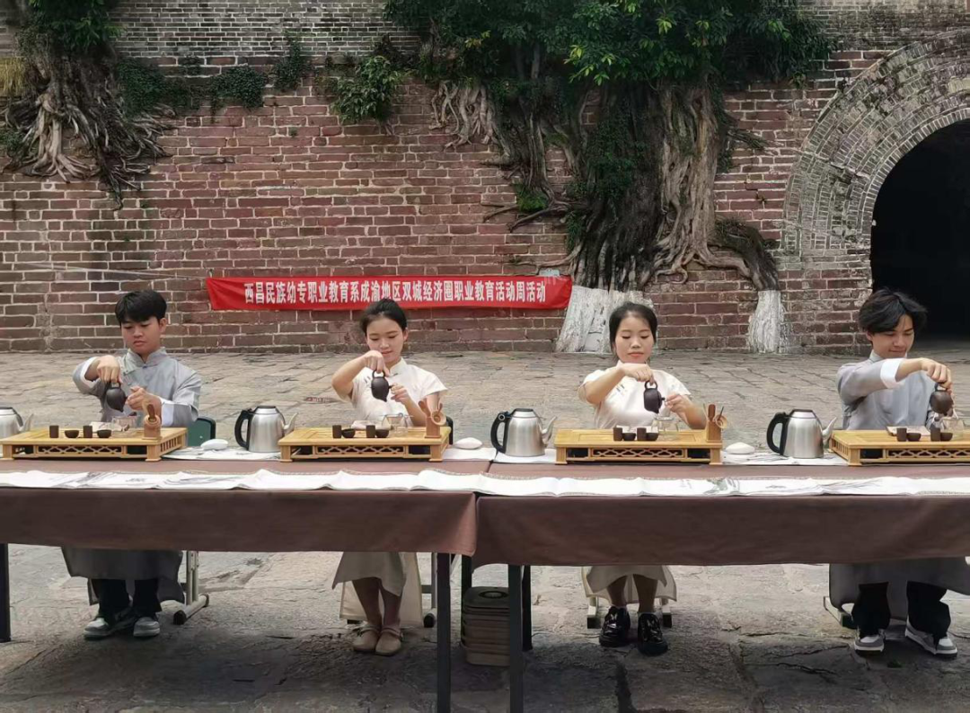 地方特色活动日,旅游管理专业学子走进西昌建昌古城,以专业与热忱打造沉浸式文旅体验。身着传统服饰的学生优雅展示盖碗茶艺,从温杯、置茶到冲泡、奉茶,行云流水间尽显四川茶文化魅力,吸引游客纷纷驻足品鉴。一批学生化身“古城文化使者”,穿梭街巷,围绕历史建筑、民俗风情、非遗技艺,以生动讲解诉说建昌古城千年故事。从明代城墙的岁月沧桑到彝族火把节的民俗风情,学生们用专业讲述带领游客领略西昌深厚文化底蕴。他们的精彩表现成为古城独特风景,彰显旅游管理专业服务地方文旅产业的实践能力与文化传播价值,为职业教育与地方文化融合发展探索新路径。