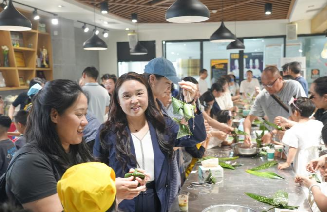活动在蛋糕工厂的参观中拉开序幕。孩子们瞪大好奇的眼睛,紧盯着生产线上的每一个细节,认真聆听工作人员介绍蛋糕的制作流程;家长们也兴致勃勃,与孩子一起探讨着现代食品工业的奥秘。随后的传统粽子制作环节更是将氛围推向高潮:翠绿的粽叶在指尖轻盈翻飞,孩子们稚嫩的小手与家长熟练的掌心共同编织出端午的温馨。有的粽子形状规整,有的粽子独具创意,每一只都承载着亲子间的合作与喜悦。
